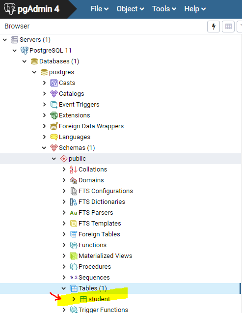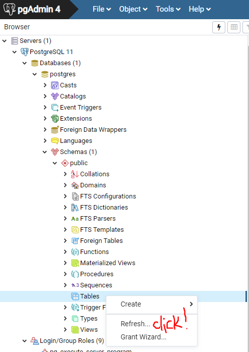 또한, pgAdmin tool을 통해서도 해당 table이 생성되었음을 확인할 수 있습니다.